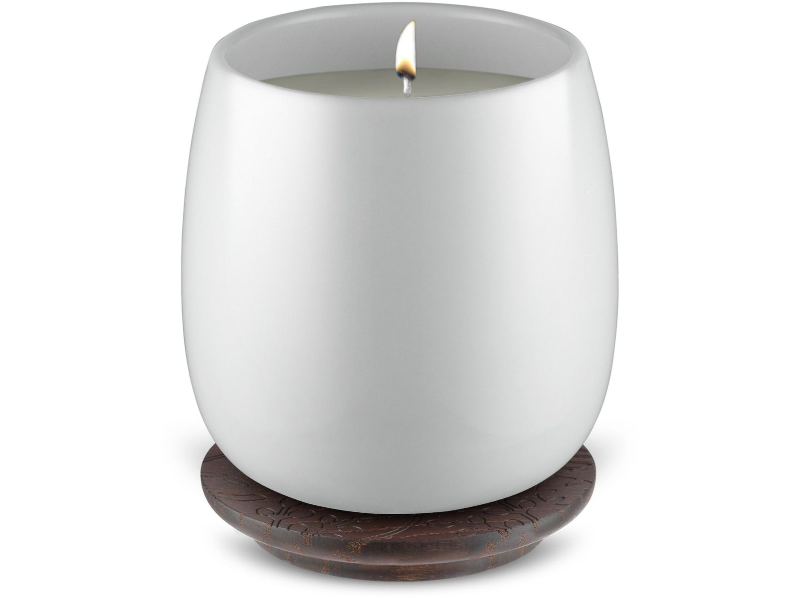 Bougie parfumée de cire végétale naturelle et exempte de substances animales. La cire est fabriquée en Italie. Plat en porcelaine avec couvercle en bois. Temps de brûlure +/-40 heures.