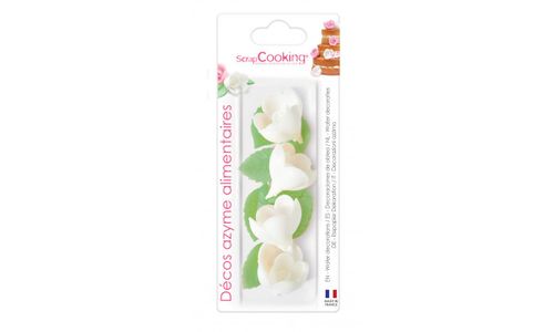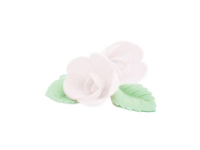 4 roses blanches+ 6 feuilles dorees azym