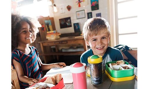 Déjeuner complet pour chaque jour d'école. Bien sûr aussi très utile lors d'une journée ou lors de l'exercice. L'ensemble repas se compose d'une bouteille pop-up et d'une boîte à lunch avec une boîte à bento.