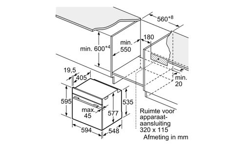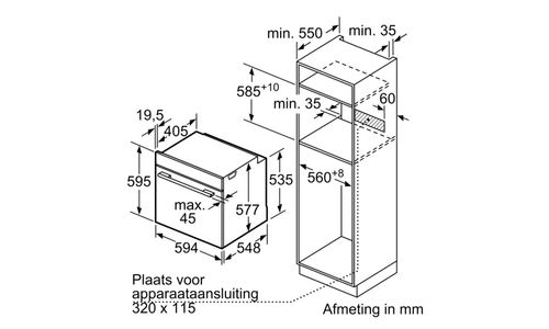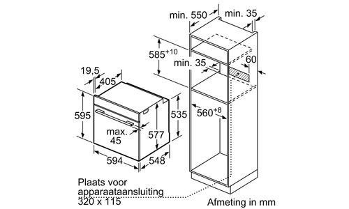 Hauteur de niche (minimum) : 60 cm