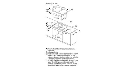 ++ Largeur de niche (minimum): 75 cm ++ Largeur: 82,60 cm ++ Puissance d'extraction (position la plus haute): 500 m³/h ++