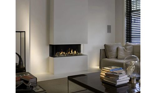 Vue sur le feu 3-zijdige haard