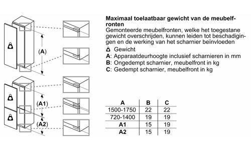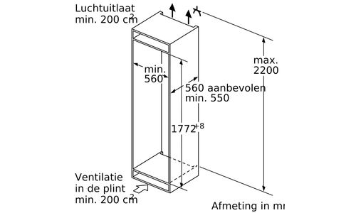 Hauteur de niche (minimum) : 177,50 cm