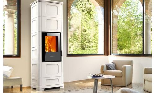 > Poêles hybrides  > Piazzetta  > E228 C-H rosso lava senza bocchetta frontale rear flue outlet