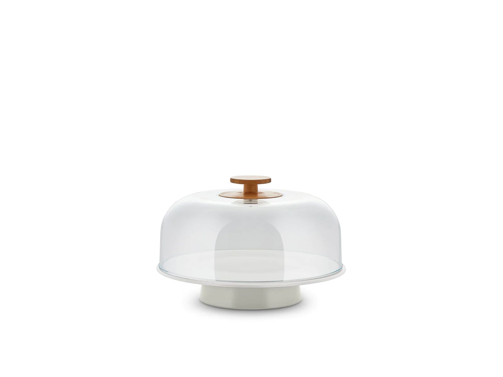 Alessi Mattina Stand in porcelain, Warm Grey. Lid in PMMA with knob in bamboo wood.