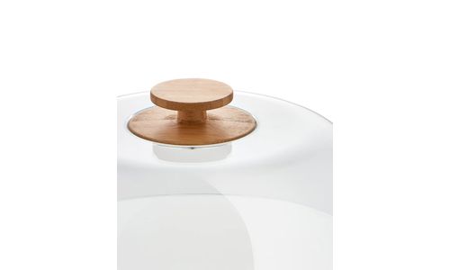 Mattina Stand in porcelain, Warm Grey. Lid in PMMA with knob in bamboo wood.