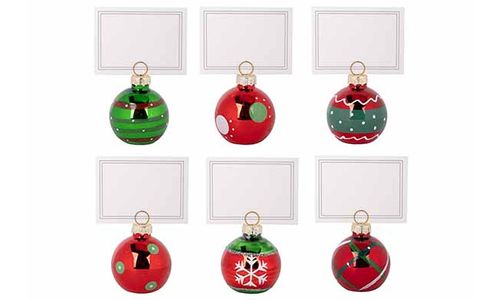 Porte-carte Set6 Xmas Ball Rouge Vert 4x 4xh9cm Verre