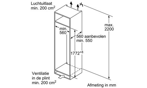 Hauteur de niche (minimum) : 177,50 cm
