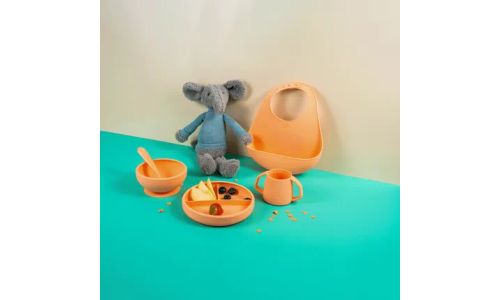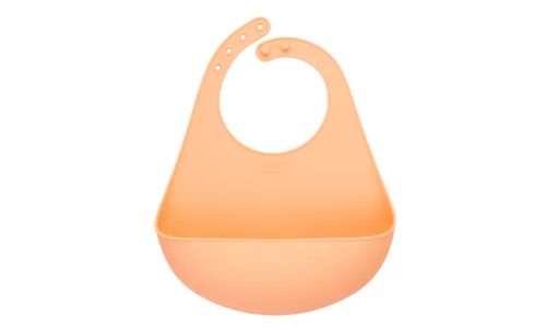 Little bavoir avec plateau de collecte en silicone abricot 27x22x6cm