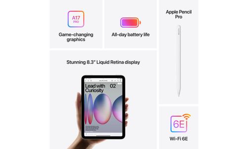 Alliant puissance et portabilité hors pair, l’iPad mini est doté de la fulgurante puce A17 Pro, d’un écran Liquid Retina de 8,3 pouces et du Wi?Fi 6E ultra-rapide. Et sa compatibilité avec l’Apple Pencil Pro vous permet d’étudier, travailler, jouer ou créer, où vous voulez.