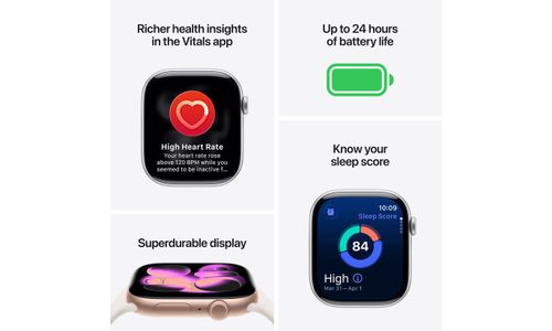 Besoin de plus d’autonomie ? Pas de problème. L’Apple Watch Series 11 offre jusqu’à 24 heures d’autonomie en utilisa­tion normale2. Même après l’avoir portée toute la journée, vous pouvez la garder au poignet la nuit sans la charger. Et continuer à recueillir toutes vos données de santé.