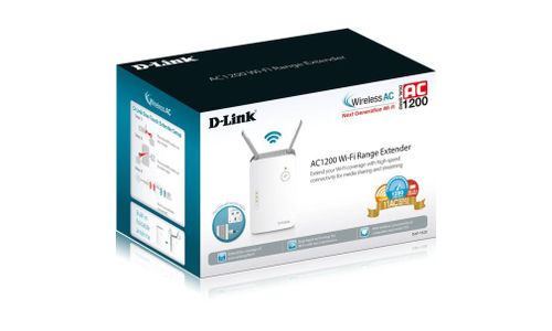 De DAP-1620 AC1200 Wi-Fi Range Extender is een draagbare draadloze repeater waarmee u een bestaand draadloos netwerk kunt uitbreiden.
