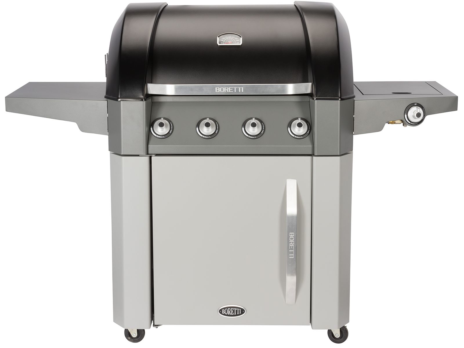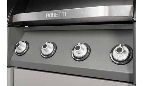 De Boretti Forza beschikt over vier hoofdbranders en gietijzeren grillroosters. Op deze gasbarbecue kunnen dus meerdere gerechten tegelijkertijd bereid worden. De gas zijbrander is er voor het klaar maken van bijvoorbeeld een sausje voor bij de vis. In het deksel zit een geïntegreerde  thermometer om bij te houden hoe warm de barbecue is. De gasfles kan onder de barbecue worden opgeborgen, zodat hij geen ruimte in de tuin of schuur inneemt.
