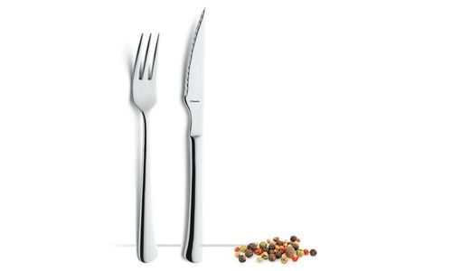 Deze elegante, roestvrij stalen steakset geeft de tafelsetting net dat beetje extra stijl.