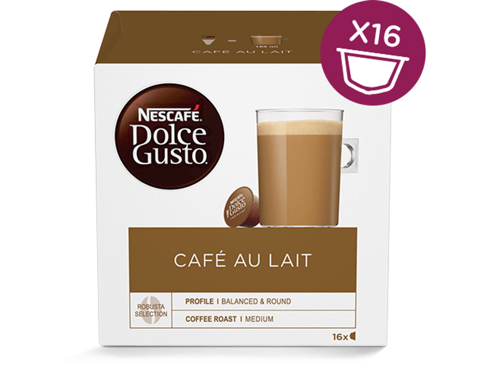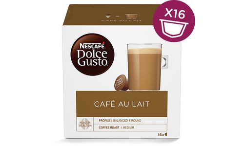 Ontdek NESCAFÉ® Dolce Gusto® Café au Lait, een gebalanceerde combinatie van intense koffie en zachte melk in één koffiecapsule. Serveertip: een mok (180ml).