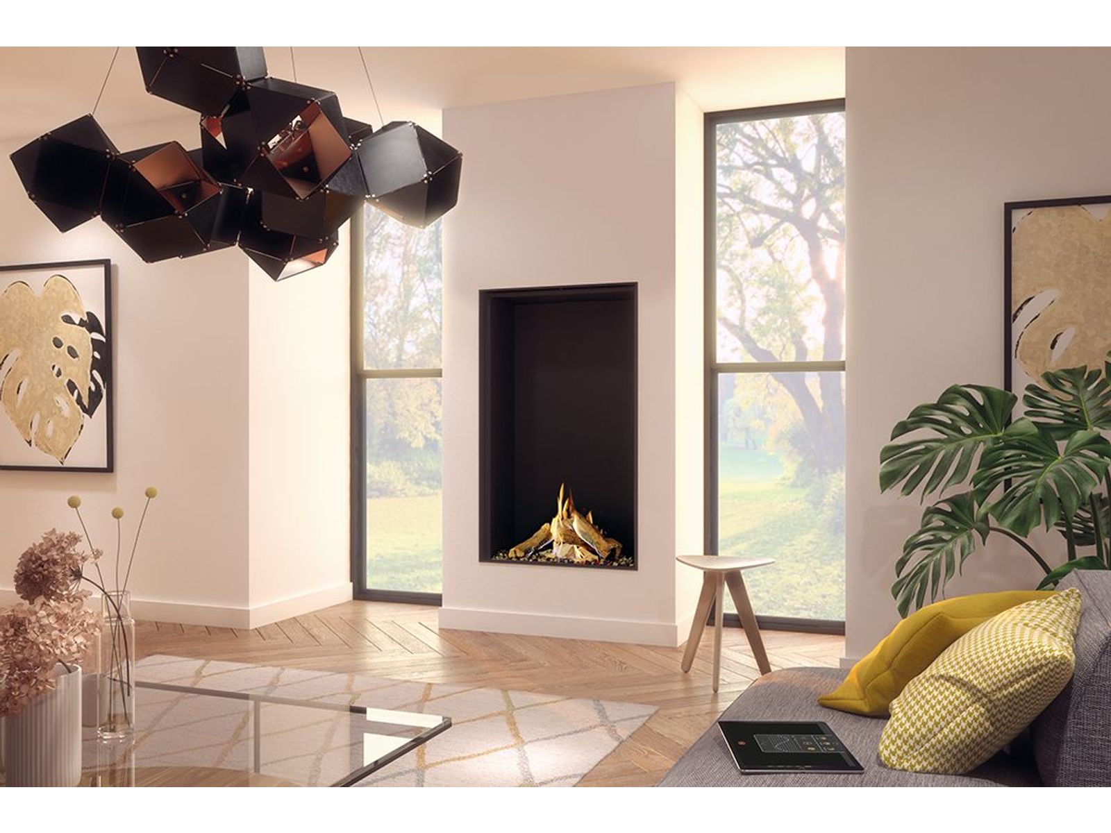 Mat glas is perfect te gebruiken in combinatie met Clear View glass, dit voorkomt elke spiegeling in de haard en creëert een warme gloed op de achterwand.