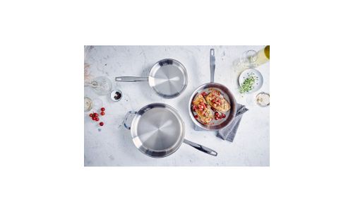 Het meerlagig materiaal, bestaande uit 5 verschillende lagen (2 lagen superieur 316 roestvrij staal en 3 lagen aluminium), zorgt voor een uitstekende warmtegeleiding en een energiezuinig kookproces.