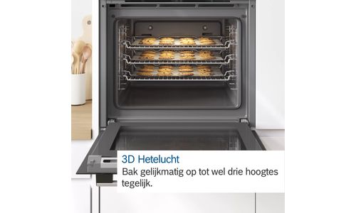 Nu kun je tal van lekkernijen, zoals koekjes, op maximaal drie niveaus tegelijk bakken. De ventilator van 3D warme lucht verdeelt de warmte snel en gelijkmatig door de ovenruimte. Je kunt ook drie gerechten tegelijk bereiden in één oven. Zo bak je lasagne voor de lunch, gebraad voor het diner en muffins voor het dessert allemaal samen, zonder dat de smaken zich mengen.