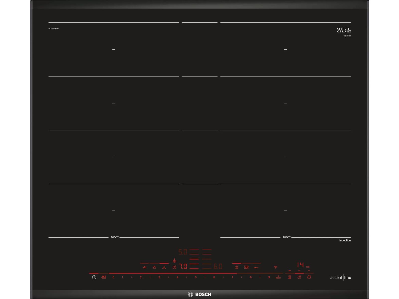 DirectSelect Premium is een 30 cm brede bediening waarmee je alles perfect onder controle houdt. Het ruime ontwerp en de makkelijk leesbare tekst maakt de bediening van de kookplaatinstellingen erg handig. Selecteer de kookzones, vermogensniveaus en andere opties met een simpele tik. Om in lijn te blijven met het strakke en elegante ontwerp verdwijnt de volledige interface wanneer de kookplaat wordt uitgeschakeld.