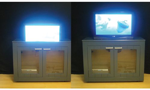 Liftsysteem op maat voor flatscreen vanaf 32-inch. Slanglengte 99 cm. Met vloerplaat, adapter voor het scherm, afstandsbediening en beveiligingsstrip.