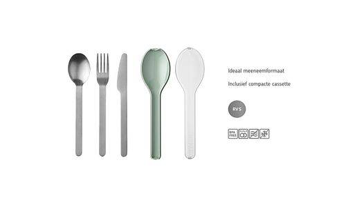 Overal lekker lunchen met deze bestekset Ellipse in Vivid blue. De bestekset bestaat uit een mes, vork en lepel en wordt geleverd in een stevige kunststof houder. Dit maakt hem ideaal voor onderweg. De set stop je moeiteloos in je tas of in één van onze Ellipse lunchboxen. Het bestek is gemaakt van RVS en mag na gebruik gewoon in de vaatwasser.