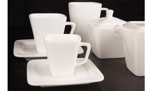 Een moderne klassieker met vierkante basisvorm en afgeronde hoeken, dat is Winston. Het is een zeer degelijke collectie in New Bone China porselein die zich prima leent voor zakelijk dineren en formele evenementen. New Bone China is zeer sterk en licht porselein met een warme uitstraling en prachtige glans. De borden zijn voorzien van speciaal vormgegeven randen om een optimale service aan tafel te kunnen bieden.